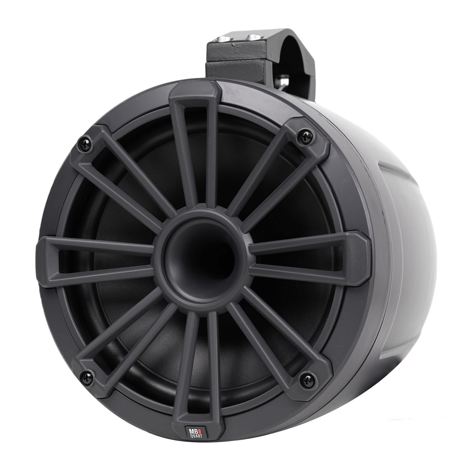 MB Quart marine and powersports certified 8 inch wake tower coincident mounted compression horns in a compact enclosure featuring UHS (ultra-high sensitivity) Technology and Wavelength Transparent Acoustic Lenses with a polypropylene cone. Packaged as pairs.